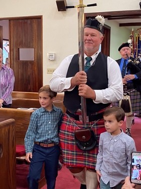It all started in Scotland or so the legend says! After August 1746 when Highland chiefs and clan members were forbidden from wearing their tartans or traditional family colors, they hid patches and pieces of forbidden tartan cloth in their boots, beneath their shirts, and tucked into their hats and made their way to the “kirk,” the Scottish word for church and specifically, the Presbyterian Church in Scotland. During the worship service, and upon a secret blessing from the minister, each worshipper touched his or her wee bit o’ tartan. Hence, began the Kirkin’ o’ the Tartan, a remembrance of who we are and whose we are.