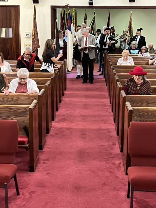 It was all brought on by the Act of Proscription, which the British Parliament passed in 1746. The Act of Proscription was intended to pressure those Scottish Presbyterians to worship according to an Anglican form of worship and to cease wearing their historic Highland dress. Although the Act was repealed in 1782, legend says that the tradition of presenting the tartan for blessing during the church service has continued over the centuries.